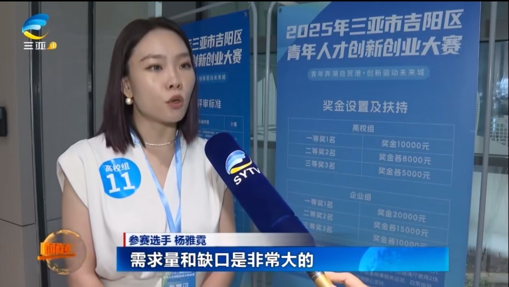 2025年6月,創(chuàng)新創(chuàng)業(yè)大賽現(xiàn)場,由楊雅霓、王曼寧等教師牽頭,網(wǎng)絡(luò)與新媒體、語言科技、經(jīng)濟(jì)與金融專業(yè)學(xué)生共同組建的創(chuàng)業(yè)隊伍自貿(mào)港酒旅直播產(chǎn)業(yè)融合共同體項目沖進(jìn)決賽,憑借清晰的邏輯、深入的市場分析、極具創(chuàng)新性的構(gòu)思以及扎實的規(guī)劃,從88個參賽團(tuán)隊中脫穎而出,并最終在12個晉級決賽的高校組項目中拔得頭籌,成功斬獲高校組一等獎。