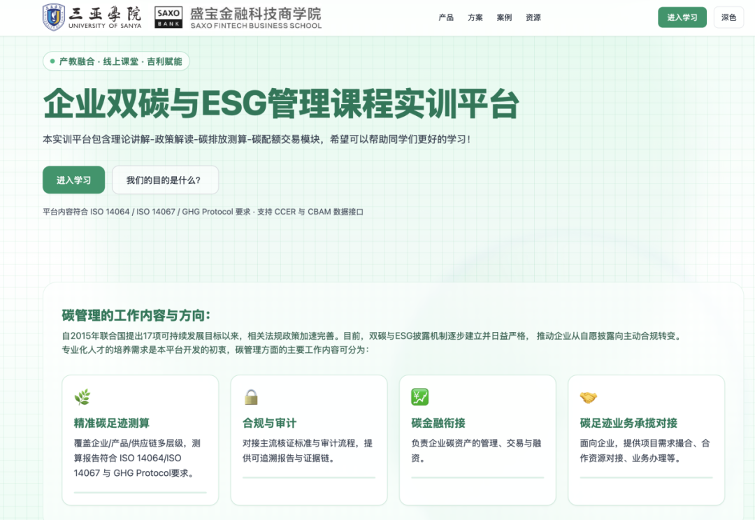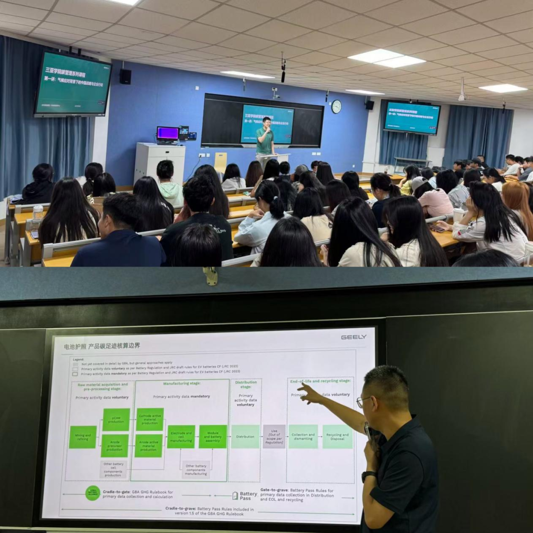 自2023年起與吉利控股集團(tuán)可持續(xù)發(fā)展共享中心長(zhǎng)達(dá)3年的深入合作,校企雙方從最初的交流到教師的頂崗實(shí)習(xí),再到將企業(yè)真實(shí)的碳盤查與產(chǎn)品碳足跡核算任務(wù)直接引入課堂。學(xué)生不再是“做題家”,而是“項(xiàng)目負(fù)責(zé)人”。
