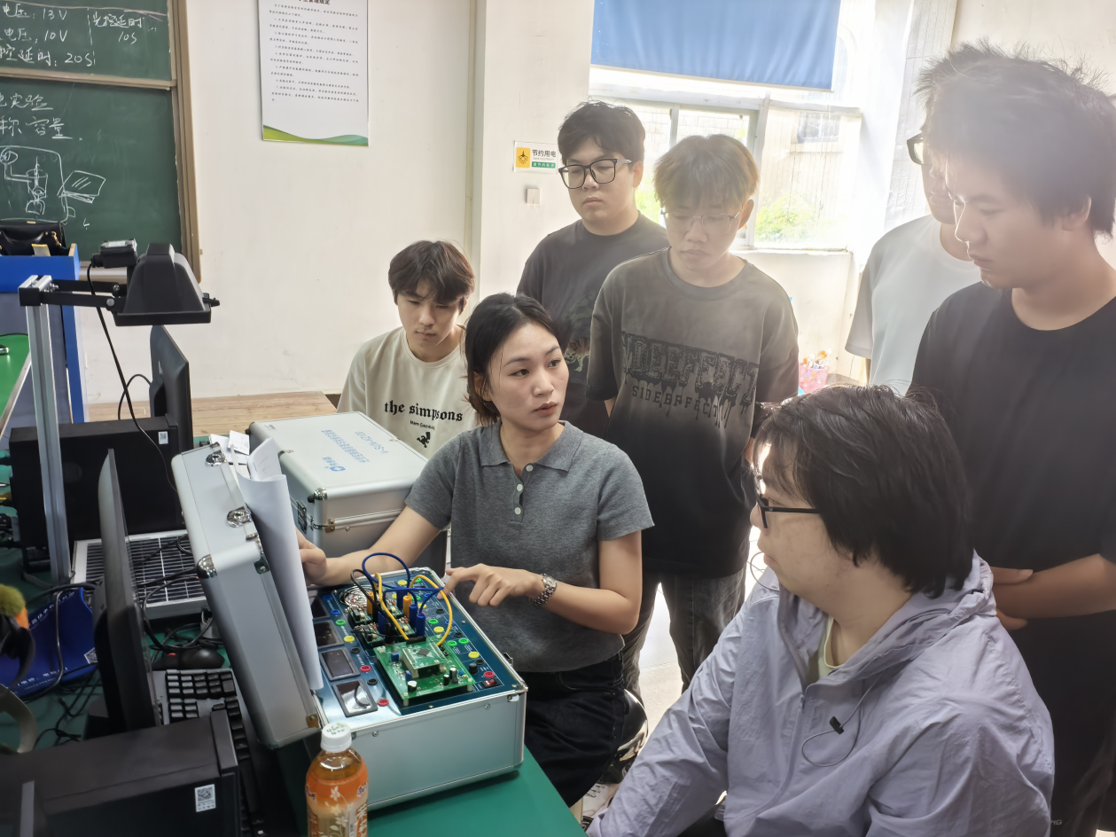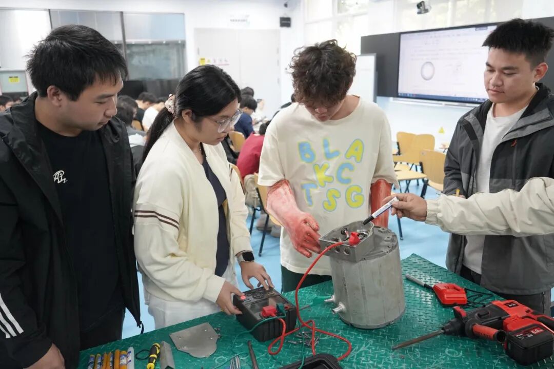 課程設計緊扣最新國標GB/T18488-2024《電動汽車用驅動電機系統(tǒng)》,王良成將企業(yè)電機開發(fā)、測試的實戰(zhàn)經驗提煉為教學案例,從電機控制器調試到技術指標檢測,每一個實驗項目都對標崗位需求?!罢n前線上預習打基礎,課中項目實操解難題,課后個性化補強補短板”的混合教學模式,形成“學—測—析—補”閉環(huán),讓學生在實操中掌握合規(guī)操作能力,徹底破解理論與產業(yè)脫節(jié)的難題。