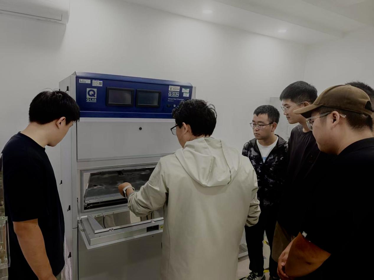 在40℃、90%濕度的“桑拿房”里,辛光紅老師的課堂沒有理論推演,只有實打實的實驗操作。這里是校企共建的濕熱環(huán)境自然光老化試驗場,學生們操作FTIR光譜儀,分析極端環(huán)境下整車材料的分子鍵變化,探尋儀表板老化的化學根源。