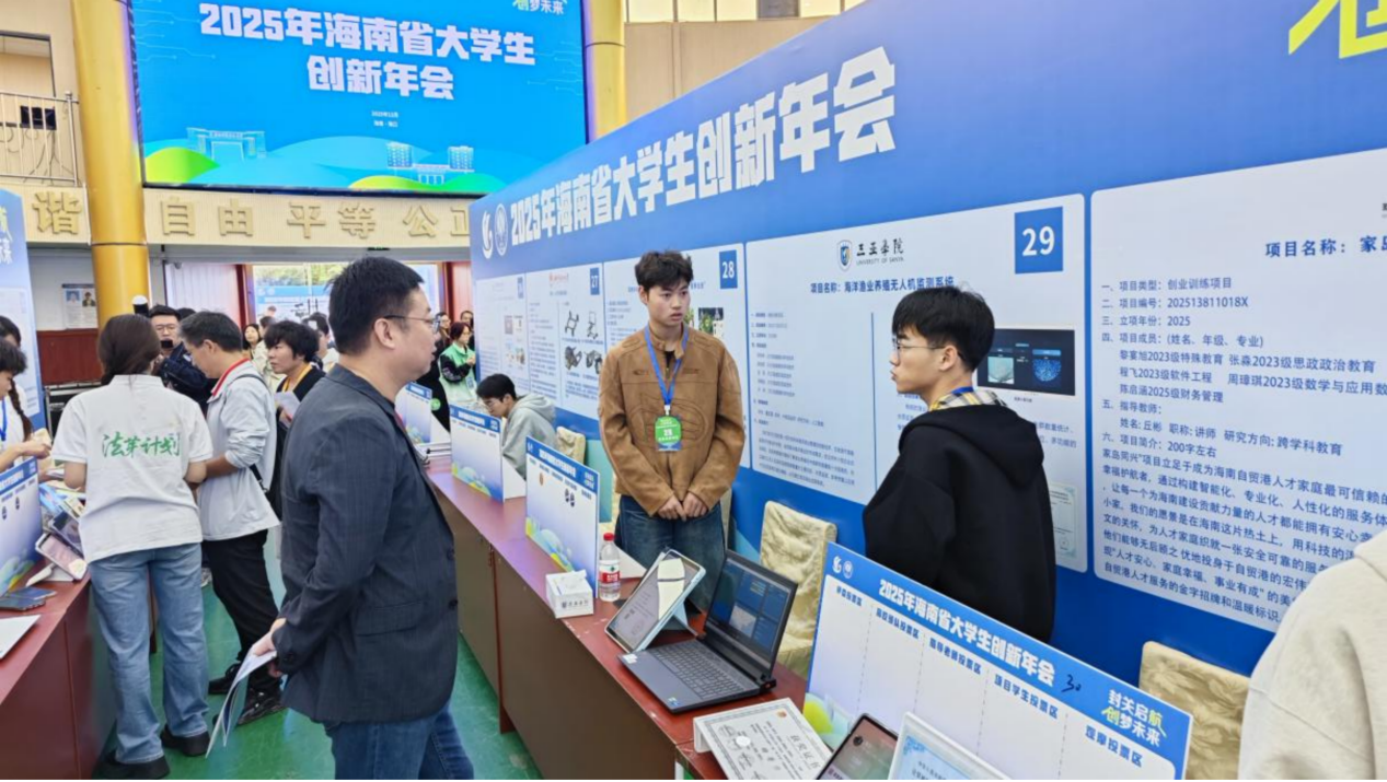 三亞學(xué)院項(xiàng)目組成員在年會(huì)現(xiàn)場(chǎng)進(jìn)行成果展示&路演答辯