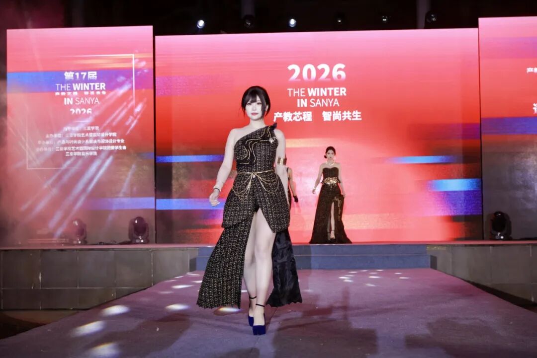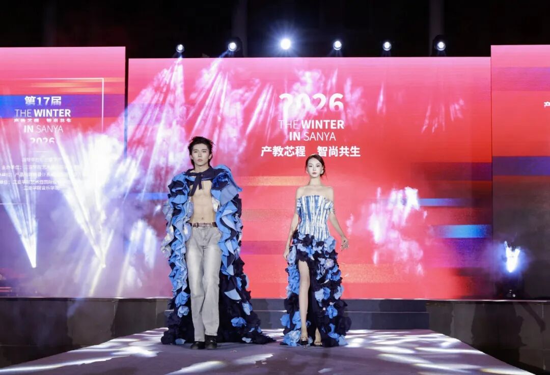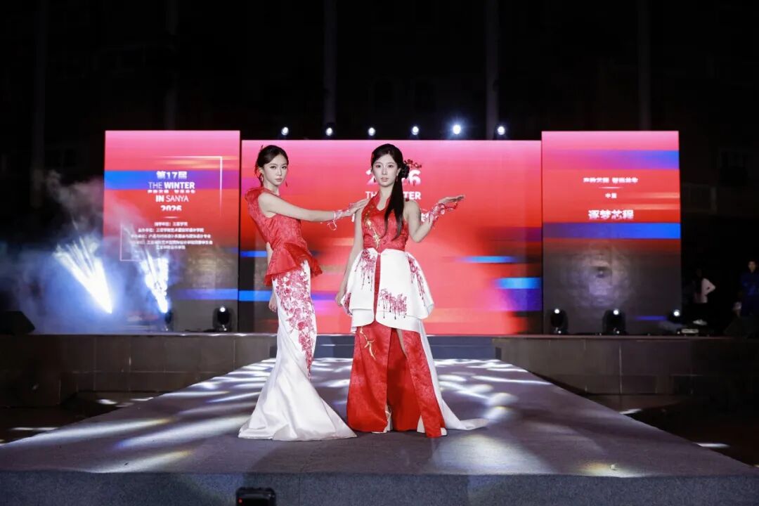 三亞學院第十七屆“三亞的冬天”服裝與服飾設計大賽優(yōu)秀作品展演在絢爛的光影與熱烈的掌聲中于書德樓前落下帷幕。