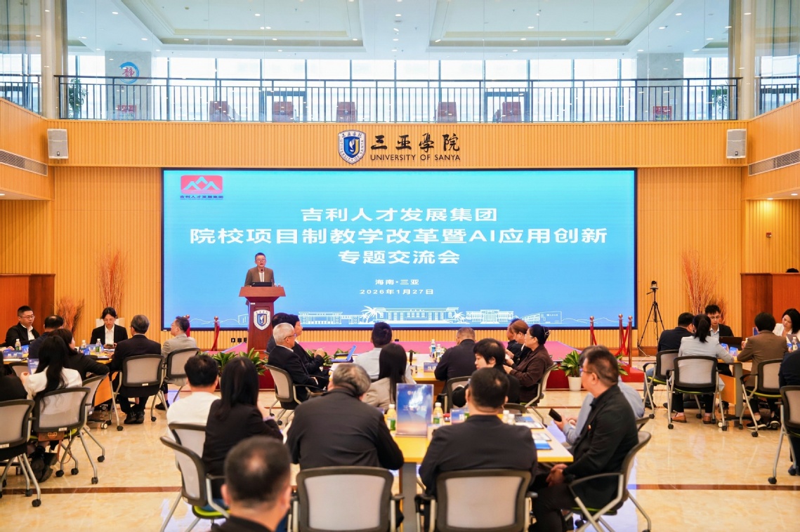 1月27日,吉利教育旗下院校齊聚三亞學(xué)院,舉辦項(xiàng)目制教學(xué)改革暨AI應(yīng)用創(chuàng)新專題交流會(huì),學(xué)校全體干部、教職員工線下線上參會(huì)。會(huì)議聚焦人工智能時(shí)代教育教學(xué)結(jié)構(gòu)性改革,旨在破解傳統(tǒng)教育與產(chǎn)業(yè)需求脫節(jié)難題,推動(dòng)項(xiàng)目制教學(xué)在學(xué)科、專業(yè)、課程全層面落地生根。三亞學(xué)院副校長李成名教授、校長助理陳博、教師楊婷婷、李珺作為學(xué)校代表分享改革實(shí)踐。
