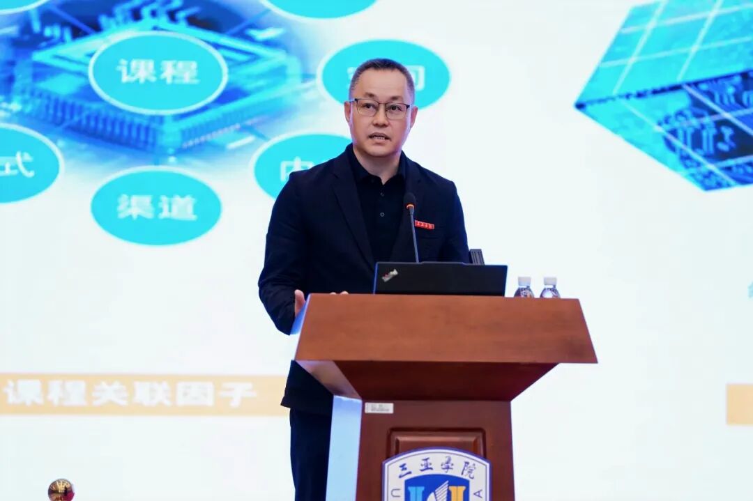 三亞學(xué)院副校長李成名教授以“場景+數(shù)據(jù)驅(qū)動(dòng)的項(xiàng)目制改革路徑”為主題,分享了學(xué)校在數(shù)字智能與先進(jìn)制造學(xué)科平臺(tái)融通層面的創(chuàng)新實(shí)踐。他提出,項(xiàng)目制改革的核心是圍繞“真題虛題”,構(gòu)建“整體需求、去中心化、共同創(chuàng)造”的教學(xué)生態(tài),篩選項(xiàng)目需滿足“現(xiàn)實(shí)有需求、學(xué)生可駕馭、成果可遷移”的三度重疊標(biāo)準(zhǔn)。