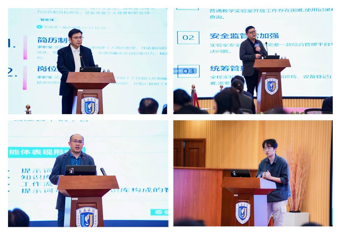 吉利學(xué)院、湘潭理工學(xué)院、南寧數(shù)字科技學(xué)院聚焦項(xiàng)目制教學(xué)改革,通過構(gòu)建AI賦能的實(shí)戰(zhàn)化商業(yè)場景,在多個(gè)專業(yè)與課程中培育學(xué)生的復(fù)合型能力與商業(yè)決策素養(yǎng)。同時(shí),積極推動(dòng)智能體技術(shù)在校園教學(xué)、管理及求職服務(wù)等場景中的創(chuàng)新應(yīng)用,以技術(shù)賦能教育流程優(yōu)化與數(shù)字化轉(zhuǎn)型,構(gòu)建智慧育人新生態(tài)。