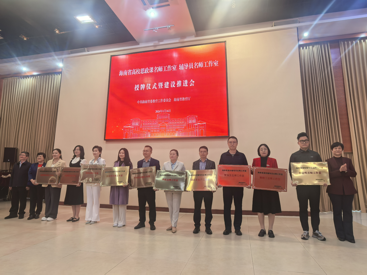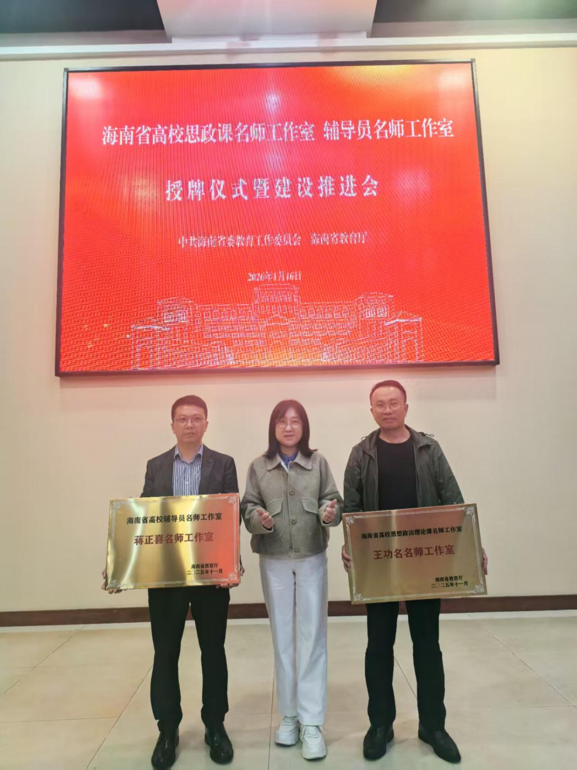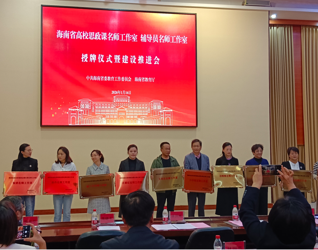 近期,海南省高校思政課名師工作室、輔導員名師工作室授牌儀式暨建設推進會在??谂e行。三亞學院馬克思主義學院院長王功名主持的“三亞學院思政訪談室”入選海南省高校思想政治理論課名師工作室;社會學院團委副書記蔣正喜主持的“AI-LOVE 心智引擎工作室”入選海南省高校輔導員名師工作室,兩個名師工作室獲省教育廳正式授牌。三亞學院副校長高一蘭代表學校出席儀式。