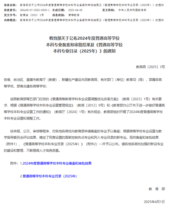 2025年4月,教育部公布了2024年度普通高等學(xué)校本科專業(yè)備案和審批結(jié)果,三亞學(xué)院申報的儲能科學(xué)與工程、時尚傳播、電子競技運(yùn)動與管理3個本科專業(yè)通過教育部備案和審批。