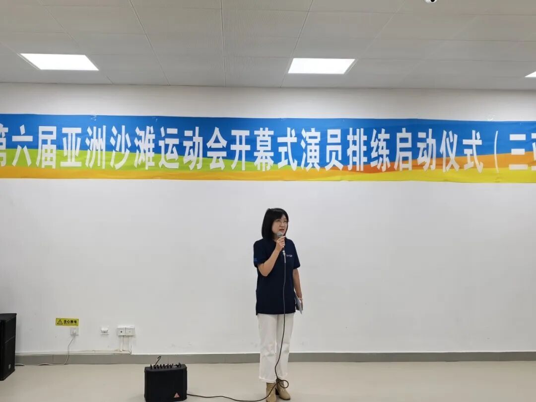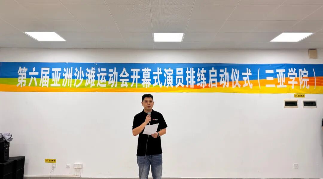 三亞學(xué)院黨委副書(shū)記、副校長(zhǎng)、學(xué)務(wù)長(zhǎng)高一蘭在致辭中為同學(xué)們打氣:“亞沙會(huì)是展示海南自貿(mào)港建設(shè)成果的重要窗口。參與開(kāi)幕式表演是學(xué)校服務(wù)地方發(fā)展、助力國(guó)際賽事的重要實(shí)踐,更是你們展現(xiàn)自我、歷練成長(zhǎng)的寶貴機(jī)遇。希望大家以主人翁姿態(tài)投入排練,發(fā)揚(yáng)吃苦耐勞的精神,用最佳狀態(tài)在亞沙會(huì)舞臺(tái)上綻放光彩!”