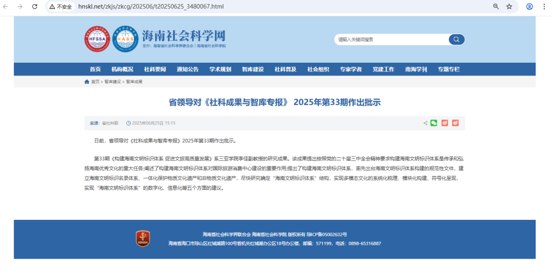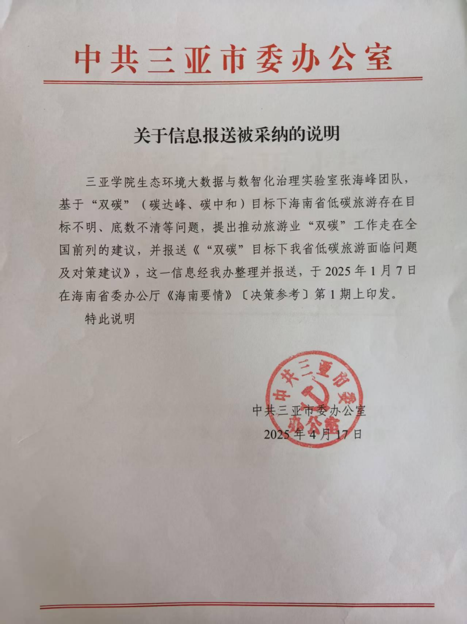 張海峰教授咨政建議在《海南要情》印發(fā)