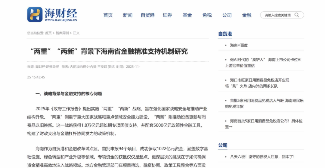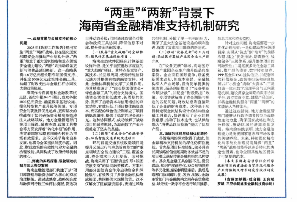 “兩重”“兩新”海南省金融精準(zhǔn)支持機(jī)制研究