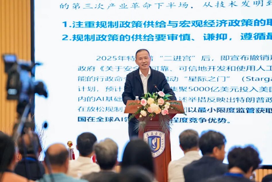 三亞學(xué)院副校長朱沁夫教授在開幕式上致辭。他表示,海南自貿(mào)港正加快打造數(shù)字貿(mào)易、數(shù)字金融、數(shù)字文旅等開放型數(shù)字經(jīng)濟(jì)產(chǎn)業(yè)體系,數(shù)字經(jīng)濟(jì)已成為自貿(mào)港建設(shè)的核心引擎。三亞學(xué)院始終立足海南、服務(wù)國家,深度整合財(cái)經(jīng)、管理、金融等優(yōu)勢學(xué)科組建商學(xué)院,聚焦數(shù)字經(jīng)濟(jì)、金融科技等前沿領(lǐng)域,打造AI賦能、項(xiàng)目驅(qū)動(dòng)的生態(tài)結(jié)構(gòu),全力服務(wù)海南自貿(mào)港高質(zhì)量發(fā)展。期待依托此次高端學(xué)術(shù)交流平臺(tái),與全國專家攜手并肩,共同推動(dòng)數(shù)字經(jīng)濟(jì)產(chǎn)學(xué)研用深度融合,為海南自貿(mào)港發(fā)展注入新動(dòng)能、增添新活力。