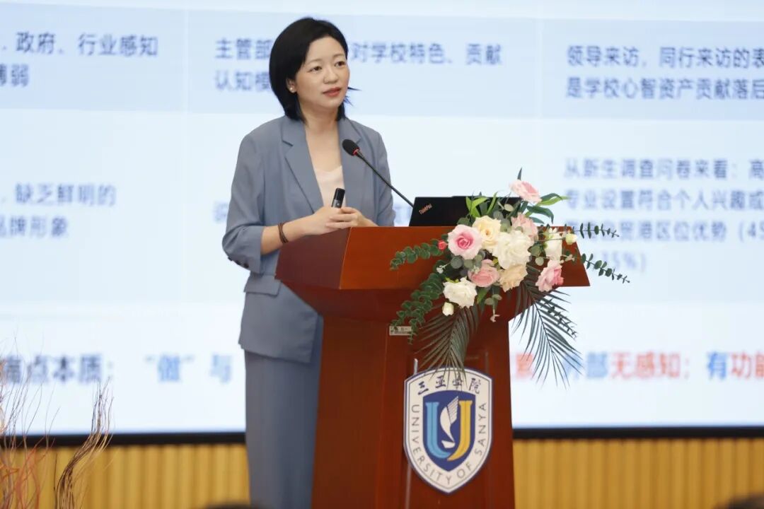 陳莎莎主任以品牌建設(shè)為主題,開展問題導(dǎo)向式復(fù)盤并部署下一步行動(dòng)。她用客觀數(shù)據(jù)分析學(xué)校在社會(huì)影響力提升、優(yōu)質(zhì)內(nèi)容出圈、品牌辨識度增強(qiáng)、組織資產(chǎn)與新質(zhì)資產(chǎn)相互轉(zhuǎn)化等方面存在的問題,深入剖析品牌意識、內(nèi)容轉(zhuǎn)化、渠道建設(shè)、部門協(xié)同等方面的短板。緊扣全員傳播要求,提出建立品牌KPI考核機(jī)制、完善常態(tài)化內(nèi)容轉(zhuǎn)化體系、激活師生傳播力量、拓展全媒體傳播矩陣、構(gòu)建全域協(xié)同傳播生態(tài)等務(wù)實(shí)舉措,分享了品牌建設(shè)如何同頻共振、同向發(fā)力,把扎實(shí)辦學(xué)實(shí)力轉(zhuǎn)化為鮮明品牌辨識度、廣泛社會(huì)信任度與持久口碑影響力,讓三亞學(xué)院品牌價(jià)值被考生、家長與社會(huì)各界看見、認(rèn)可的思考。